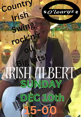 TORROX – De Ierse zanger en gitarist Irish Albert treedt zondagmiddag 10 december op bij O’Leary’s Irish Bar in de kustplaats Torrox. Het optreden begint rond de klok van 15.00 uur.