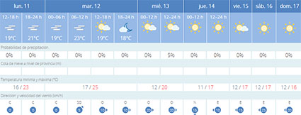 NERJA – Deze week lijkt er wisselvallig weer in aantocht voor Nerja en omgeving. De meteorologische dienst Aemet (Agencia Estatal de Meteorología) voorziet voor dinsdag 12 december een dag met maxima tot 25 graden Celsius, een dag later (woensdag 13 december) wordt het hooguit 20 graden en later in de week zakt de maximum temperatuur zelfs tot 17 graden.