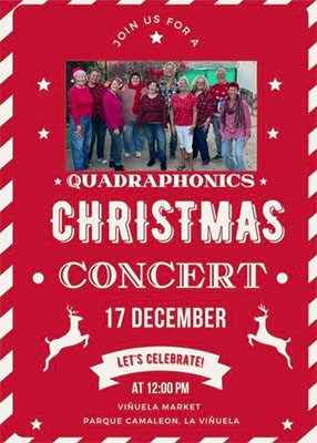 LA VINUELA – In het Axarquía-dorp La Viñuela, direct naast het gelijknamige meer, staat zondag 17 december een kerstconcert gepland. Deze begint om 12.00 uur en wordt verzorgd door de groep Quadraphonics.