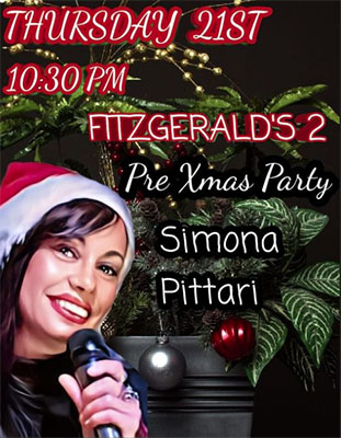 NERJA – De zangeres Simona Pittari treedt donderdagavond 21 december op bij Fitzgerald’s Bar II, in het centrum van Nerja aan de Calle Antonio Millón 2, tijdens een zogeheten ´Pre Christmas Party´.