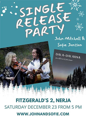 NERJA – Bij Fitzgerald’s Bar I in Nerja is zaterdagmiddag 23 december een ´Single Release Party´ bij te wonen, ter ere van het uitbrengen van de single ´Dal A – Dal Arna´ door het duo John Mitchell en Sofie Jonsson. Het optreden van dit duo begint rond 17.00 uur.