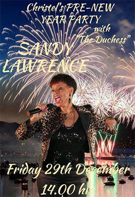 TORROX-COSTA – In bar Chez Christel in de kustplaats Torrox, op zo’n tien kilometer afstand van Nerja, staat vrijdagmiddag 29 december een optreden gepland van de zangers Sandy Lawrence tijdens een zogeheten ´Pre-New Years-Party´.