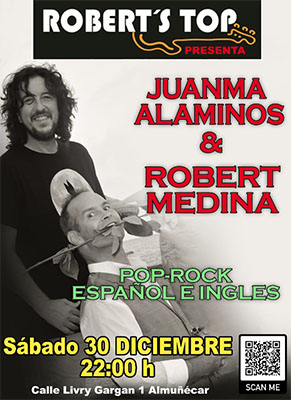 ALMUNECAR – Het duo Juanma Alaminos en Robert Medina treedt zaterdagavond 30 december op In bar/restaurant Robert’s Top in Almuñécar. Het optreden begint rond 22.00 uur.