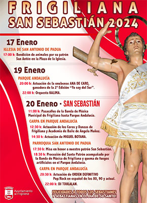 Zaterdag 20 januari staat er vanaf 11.00 uur een parade door het dorp op de rol onder aanvoering van de Banda de Música de Frigiliana, welke eindigt in het Parque de Andalucía. Daar staan vanaf 12.30 uur optredens gepland van Coros y Danzas de Frigiliana, de dansschool Academia de Baile de Ángela Muñoz en andere artiesten. In de avonduren wordt het feest afgesloten met een vuurwerkspektakel vanaf het Parque de Andalucía.