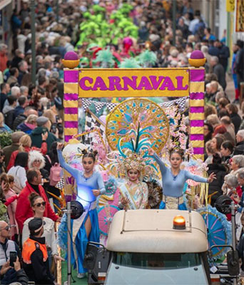 Op vrijdag 9 februari vinden de verkiezingen rond het kindercarnaval plaats (aanvang 17.00 uur) op het Balcón de Europa. Ook is daarbij een optocht te zien. De grote en traditionele carnavalsparade staat gepland op zaterdag 10 februari. Deze vertrekt rond 17.00 uur van de Calle Jaén om na een rondtocht door het centrum (Calle Diputación, Plaza Cavana, Calle Granada, Plaza de la Ermita, Calle San Miguel, Calle Cantarero, Calle Pintada, Calle Puerta del Mar te eindigen op het Balcón de Europa.