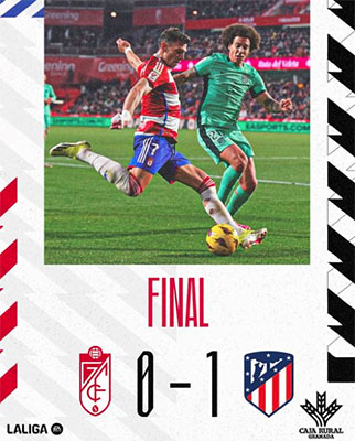 GRANADA – In de Spaanse voetbalcompetitie ´La Liga´ is staartclub Granada CF maandagavond 22 januari in het eigen Nuevo Cármenes-stadion nipt onderuit gegaan tegen topclub Atlético Madrid: 0-1.