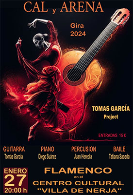 NERJA – De flamencoshow ´Cal y Arena´ wordt zaterdagavond 27 januari door leden van het Tomas García Project opgevoerd in het Centro Cultural Villa de Nerja aan de Calle Granada 45, in de binnenstad van Nerja.