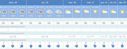 Dit voorziet de Spaanse meteorologische dienst Aemet (Agencia Estatal de Meteorología) in de jongste weersvoorspellingen. Vooral zondag 28 en maandag 29 januari gaat Nerja daarbij gebukt onder stevige bewolking, waarbij de neerslagkans volgens weerkundigen zo goed als nihil is.