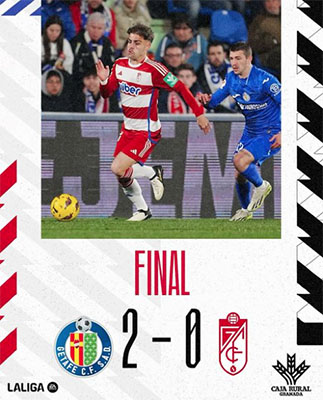 GETAFE – In de Spaanse La Liga is de Andalusische voetbalclub Granada CF maandagavond 29 januari met 2-0 onderuit gegaan bij en tegen Getafe CF. Beide doelpunten in het stadion Alfonso Pérez van de Madrileense voorstad vielen in de eerste helft van de wedstrijd.