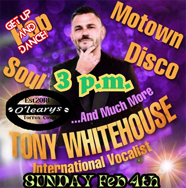 TORROX – De Britse zanger Tony Whitehouse treedt zondagmiddag 4 februari op bij O’Leary’s Irish Bar in de kustplaats Torrox. Het optreden begint rond de klok van 15.00 uur.