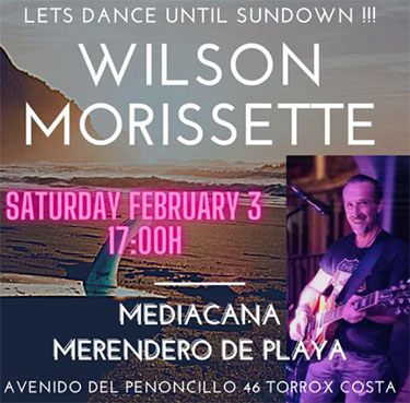 TORROX-COSTA – Bij Mediacaña Merendero de Playa in Torrox-Costa staat zaterdagmiddag 3 februari een optreden geprogrammeerd van de artiest Wilson Morissette. Het optreden begint rond 17.00 uur.
