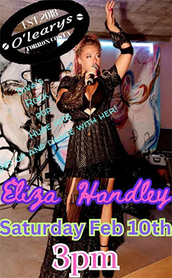 TORROX – De zangeres Eliza Handley treedt zaterdagmiddag 10 februari op bij O’Leary’s Irish Bar aan de Paseo Maritímo de Ferrara in de kustplaats Torrox.