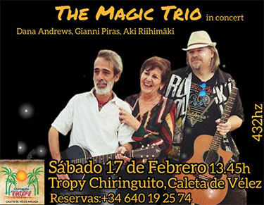 CALETA DE VELEZ – In de kustplaats Caleta de Vélez treedt zaterdagmiddag 17 februari de band The Magic Trio op. Dit gebeurt bij Chiringuito Tropy, vlakbij de jachthaven van Vélez-Málaga, Puerto Caleta de Vélez.