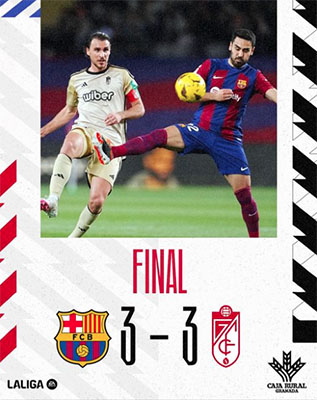 Een kwartier na de pauze nam Granada zelfs de leiding in de wedstrijd via Facundo Pellistri. Het antwoord van Barcelona kwam snel: drie minuten later was het weer gelijk (2-2) na een treffer van Robert Lewandowski. Nog eens drie minuten later, in de 66ste minuut van het duel, nam Granada brutaal opnieuw de leiding: dit keer was het Ignasi Miquel die namens Granada doel trof (2-3). Barcelona moest, ondanks een veldoverwicht, vervolgens tot tien minuten voor het einde wachten alvorens opnieuw Lamine Yamal doel trof en daarmee de eindstand bepaalde op 3-3.