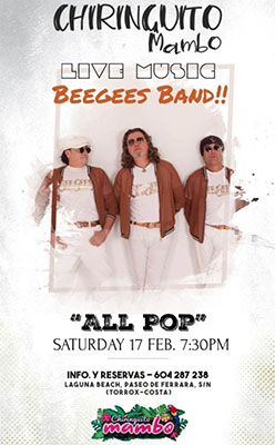TORROX – Bij Chiringuito Mambo in Torrox treedt zaterdagavond 17 februari een coverband van de formatie Bee Gees op. Het optreden onder de naam ´All Pop´ begint om circa 19.30 uur.