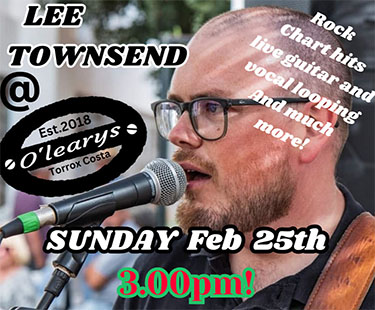 TORROX – De Britse zanger/gitarist Lee Townsend treedt zondagmiddag 25 februari op bij O’Leary’s Bar aan de Paseo Maritímo de Ferrara in Torrox-Costa. Het optreden begint om circa 15.00 uur, de toegang is vrij.