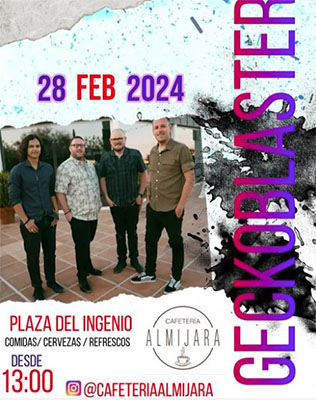 FRIGILIANA – De band Geckoblaster (met onder anderen de lokaal vermaarde zanger en gitarist Lee Townsend in de gelederen) speelt woensdag 28 februari ter ere van de Día de Andalucía bij tapasbar en restaurant Almijara aan de Calle Real 1 in het bergdorp Frigiliana.