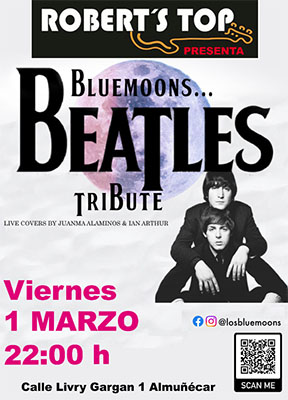 ALMUNECAR – Bij bar/restaurant Robert’s Top in Almuñécar staat vrijdagvond 1 maart een Beatles Tribute-band op het programma. Het optreden begint rond de klok van 22.00 uur, de uitvoerende artiesten zijn Juanma Alaminos en Ian Arthur.