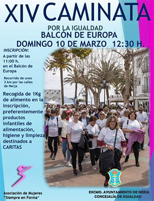 NERJA – De jaarlijkse Caminata por la Igualdad in Nerja wordt dit jaar gehouden op zondag 10 maart. Deze ‘mars voor gelijkheid’, dit jaar toe aan de veertiende editie, vertrekt zondag vanaf 12.30 uur op het Balcón de Europa.
