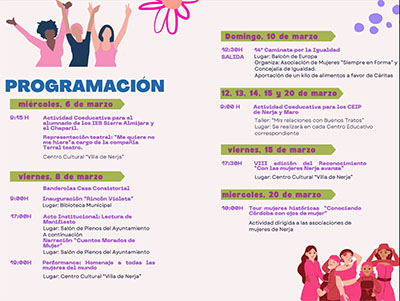 Speerpunt is de veertiende editie van de ‘Caminata por la Igualdad’ (‘Mars voor gelijkheid’), zondag 10 maart (vertrek vanaf het Balcón de Europa voor een route van drie kilometer door de binnenstad).