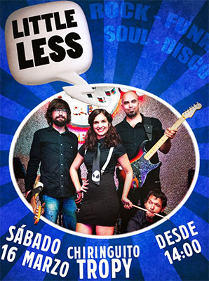 CALETA DE VELEZ – In de kustplaats Caleta de Vélez treedt zaterdagmiddag 16 maart de band The Little Less op. Dit gebeurt bij Chiringuito Tropy, vlakbij de jachthaven van Vélez-Málaga, Puerto Caleta de Vélez.