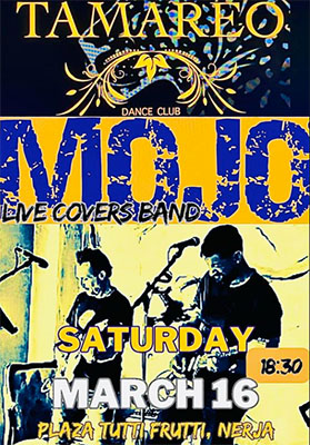 Coverband Mojo op Plaza Tutti Frutti in Nerja NERJA – De coverband Mojo speelt zaterdagavond 16 maart op het uitgaansplein Plaza Tutti Frutti in het centrum van Nerja. Dit gebeurt bij bar Tamareo vanaf 18.30 uur. Delen: Klik om te delen op X (Opent in een nieuw venster) X Klik om te delen op Facebook (Opent in een nieuw venster) Facebook Vind-ik-leuk Aan het laden...