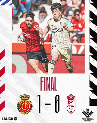 PALMA – Op de Canarische Eilanden heeft de Andalusische voetbalclub Granada CF zaterdagmiddag 16 maart in de 28ste speelronde voor de Spaanse Primera División (´La Liga´) de achttiende nederlaag van dit voetbalseizoen opgelopen. In Palma ging Granada met 1-0 onderuit bij RCD Mallorca.
