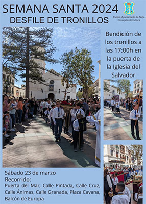 De eerste, het zogeheten Desfile de Tronillos, vindt plaats op zaterdag 23 maart. Deze vertrekt rond de klok van 17.00 uur bij de El Salvador-kerk op het Balcón de Europa. De route: Puerta del Mar, Calle Pintada, Calle La Cruz, Calle Ánimas, Calle Granada, Plaza Cavana en het Balcón de Europa.