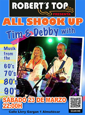 ALMUNECAR – In bar/restaurant Robert’s Top in Almuñécar staat zaterdagavond 23 maart een optreden geprogrammeerd van het Duo All Shook Up. Het optreden begint rond 22.00 uur.