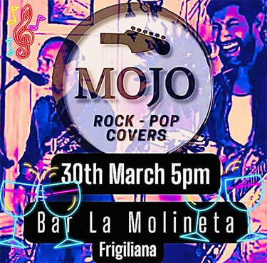 Coverband Mojo bij bar La Molineta in Frigiliana FRIGILIANA – De coverband Mojo speelt zaterdagmiddag 30 maart bij bar La Molineta in Frigiliana. Deze bar is te vinden aan de Carretera Frigiliana, de weg tussen Nerja en Frigiliana. Het optreden begint rond de klok van 17.00 uur. Delen: Klik om te delen op X (Opent in een nieuw venster) X Klik om te delen op Facebook (Opent in een nieuw venster) Facebook Vind-ik-leuk Aan het laden...