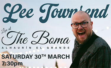 Lee Townsend bij The Boma in Alhaurin El Grande ALHAURIN EL GRANDE – De Britse zanger/gitarist Lee Townsend treedt op zaterdag 30 maart op in Alhaurin el Grande. Townsend is dan vanaf 19.30 tot circa 22.00 uur actief in bar The Boma aan de Avenida de Mijas, de toegang is vrij. Delen: Klik om te delen op X (Opent in een nieuw venster) X Klik om te delen op Facebook (Opent in een nieuw venster) Facebook Vind-ik-leuk Aan het laden...