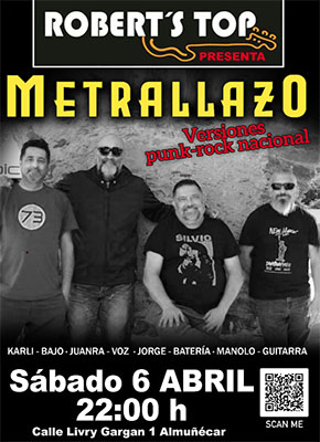 ALMUNECAR – Bij bar/restaurant Robert’s Top in Almuñécar treedt zaterdagavond 6 april de band Metrallazo op. Het optreden begint rond 22.00 uur.