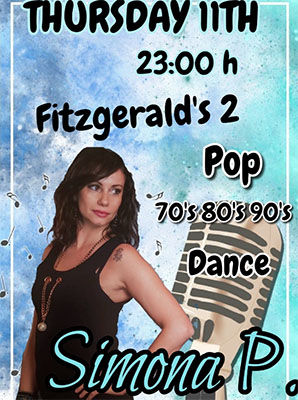 NERJA – De zangeres Simona Pittari treedt donderdagavond 11 april op bij Fitzgerald’s Bar II, in het centrum van Nerja aan de Calle Antonio Millón 2.