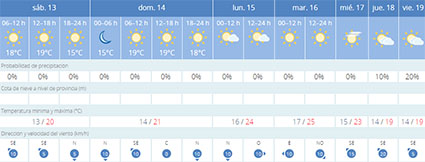 NERJA – De meteorologen van het weerstation Aemet (Agencia Estatal de Meteorología) verwachten de komende week veel zon en gemiddelde dagtemperaturen van (ruim) boven 20 graden Celsius rond Nerja.
