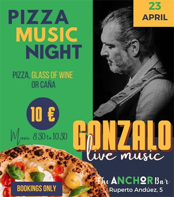 NERJA – Bij de Anchor Bar aan de Calle Ruperto Andúez 5 in Nerja treedt dinsdagavond 23 april de lokaal vermaarde gitarist Gonzalo op.