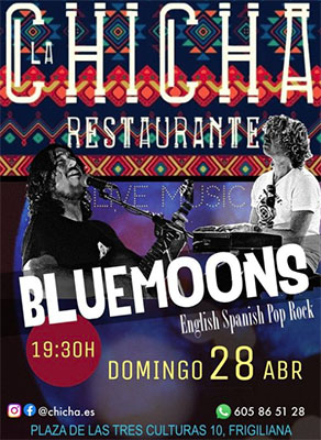 FRIGILIANA – De formatie Los BlueMoons treedt zondagavond 28 april op bij restaurant Chicha aan de Avenida Carlos Cano in Frigiliana.