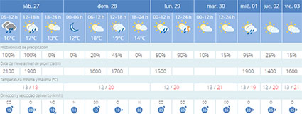 De temperaturen schommelen daarbij rond de grens van 20 graden Celsius, terwijl de wind met ingang van maandag in kracht toeneemt. Op maandagmiddag 29 april is er in de huidige vooruitzichten zelfs sprake van kans op onweer. De, normaal gesproken bijna altijd aanwezige, zon laat zich de komende week maar sporadisch zien aan de Costa del Sol. Vaak wordt deze aan het oog onttrokken door passerende wolkendekken.