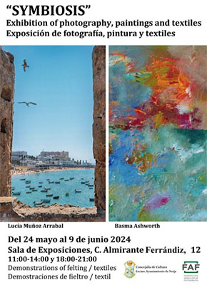 NERJA – In de Sala Municipal de Exposiciones van Nerja, aan de Calle Almirante Ferrándiz 12 naast het postkantoor van Nerja, is van vrijdag 24 mei tot en met zondag 9 juni een expositie te zien onder de naam ´Symbiosis´ met schilderijen, foto´s en werken op textiel van de diverse kunstenaars.