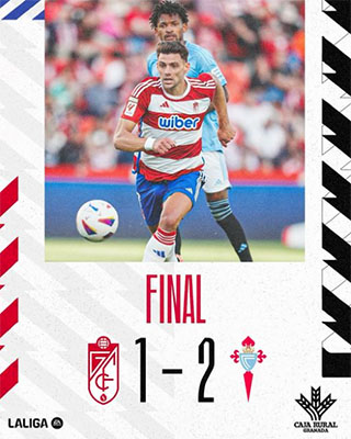 De aanstaande degradant hield één helft stand tegen de middenmoter. Halverwege de tweede helft (61ste minuut) produceerde Jørgen Strand Larsen de openingstreffer voor Celta, zijn ploegmaat Jonathan Bamba verdubbelde twee minuten later de voorsprong. Vier minuten voor tijd deed Bruno Méndez namens Granada nog wat terug: 2-1.