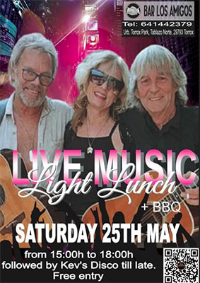 Band Light Lunch bij bar Los Amigos TORROX – Bij bar Los Amigos in de kustplaats Torrox treedt zaterdagmiddag 25 mei de band Light Lunch op. Het optreden begint rond 15.00 uur, de bar is te vinden in de urbanisatie Torrox Park aan het Centro Commercial 1b. Delen: Klik om te delen op X (Opent in een nieuw venster) X Klik om te delen op Facebook (Opent in een nieuw venster) Facebook Vind-ik-leuk Aan het laden...
