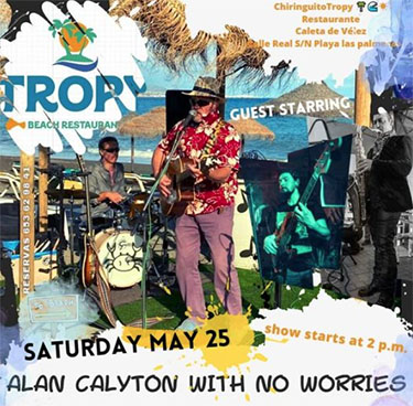 CALETA DE VELEZ – In de kustplaats Caleta de Velez treedt zaterdagmiddag 25 mei de Britse gitarist Alan Clayton met zijn band op. Dit gebeurt bij Chiringuito Tropy, vlakbij de jachthaven van Vélez-Málaga, Puerto Caleta de Velez.