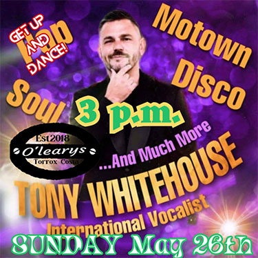 TORROX – De Britse zanger Tony Whitehouse treedt zondagmiddag 26 mei op bij O’Leary’s Irish Bar in de kustplaats Torrox. Het optreden begint rond de klok van 15.00 uur.