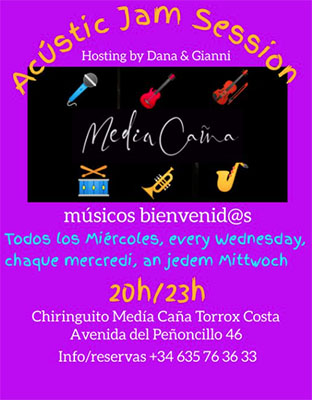 TORROX – Bij Chringuito Medía Caña in de kustplaats Torrox treedt woensdagavond 29 mei het regionaal vermaarde duo Dana Andrews & Gianni Piras op. Medía Caña is te vinden aan de Avenida del Peñoncillo 46 in Torrox, op circa tien kilometer van Nerja.