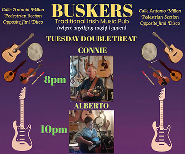 NERJA – De gitaristen/zangers Connie en Alberto Fer treden dinsdagavond 28 mei op bij Buskers Irish Pub in Nerja. De bar is te vinden aan de Calle Antonio Millón.