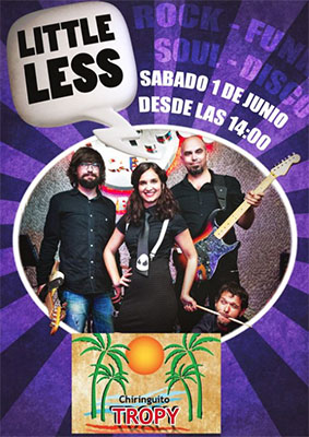 CALETA DE VELEZ – In de kustplaats Caleta de Vélez treedt zaterdagmiddag 1 juni de band The Little Less op. Dit gebeurt bij Chiringuito Tropy, vlakbij de jachthaven van Vélez-Málaga, Puerto Caleta de Vélez.