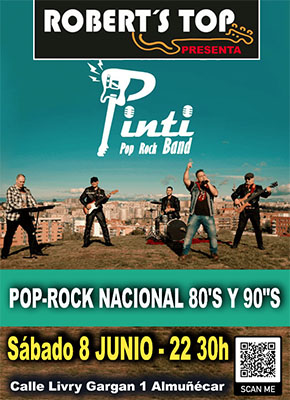 ALMUNECAR – Bij bar/restaurant Robert’s Top in Almuñécar staat zaterdagavond 8 juni een optreden geprogrammeerd van de pop-en rockband Pinti. Het optreden begint rond 22.30 uur.