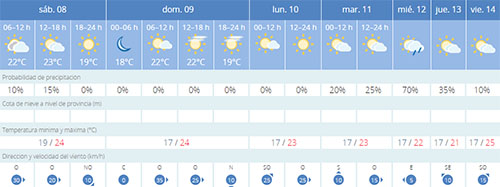 Een en ander blijkt uit de meest recente weersverwachtingen van de meteorologische dienst Aemet (Agencia Estatal de Meteorología). Daaruit blijkt ook dat de wind dit weekeinde én aan het begin van de komende week vrij hinderlijk aanwezig kan zijn.