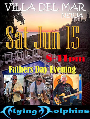 MARO – De regionaal vermaarde en populaire band The Flying Dolphins treedt zaterdagavond 15 juni op bij camping Villa del Mar in Maro (aan de kust naast Nerja gelegen). Het optreden is vrij toegankelijk, de show begint rond de klok van 20.00 uur en duurt tot circa 23.00 uur.
