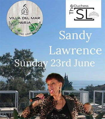 MARO – De zangeres Sandy Lawrence treedt zondagmiddag 23 juni op bij camping Villa del Mar in Maro (aan de kust naast Nerja gelegen). Het optreden is vrij toegankelijk en duurt van circa 13.00 uur tot ongeveer 16.00 uur.