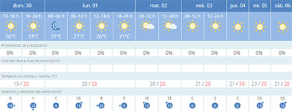 NERJA – De temperaturen boven en rond Nerja lopen de komende week nog iets verder omhoog. Het weerstation Aemet (Agencia Estatal de Meteorología) verwacht daarbij aan het einde van de komende week gemiddelde dagtemperaturen van 30 graden Celsius.